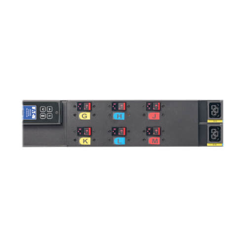 The EMAGFFC4C4C4C4L features 24 C39 combo outlets, which accept both C14 and C20 connectors, adding flexibility to deployments and reducing the quantity of PDU types you will need to purchase and install. All 24 outlets provide remote control and power-cycling of connected devices to save the time and cost of site visits. You can program sequential startups to manage inrush current and shed nonessential loads to increase the runtime of critical equipment during outages. You can even remotely shut down outlets to prevent unauthorized devices from causing overloads.