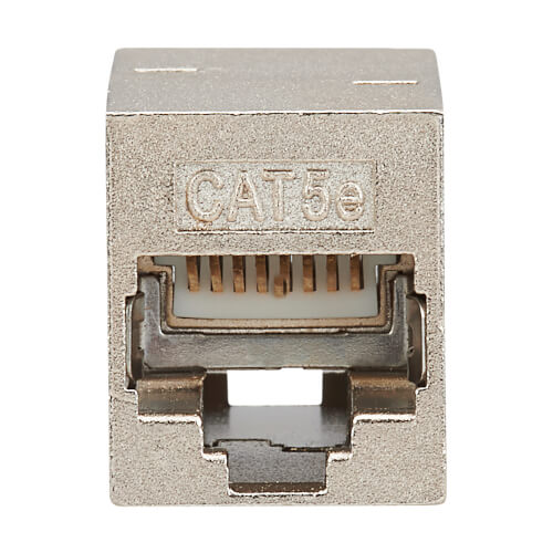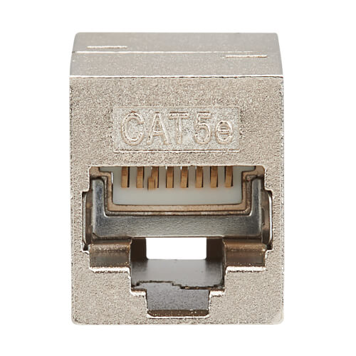 This Shielded Cat5e standalone RJ45 straight inline coupler provides a female-to-female feed-through connection. It allows you to extend the length of a Cat5e Ethernet cable by adding another Cat5e Ethernet cable. Shielded housing protects against EMI/RFI. UL certified.