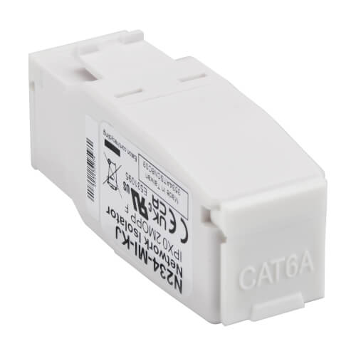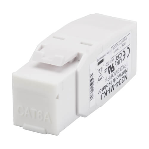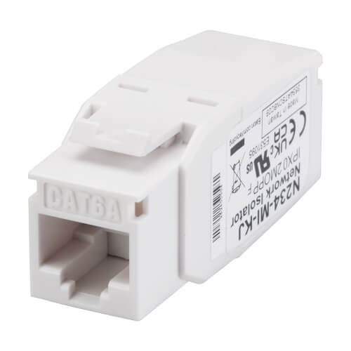 This keystone isolator connects to permanently installed Ethernet cables and provides electrical isolation at the exit terminal. For Ethernet cable installation, including its network terminating isolator, to fully meet ISO 11801 Class EA or TIA/EIA 568 Cat6a access requirements, the cable itself must have certain conditions of performance.