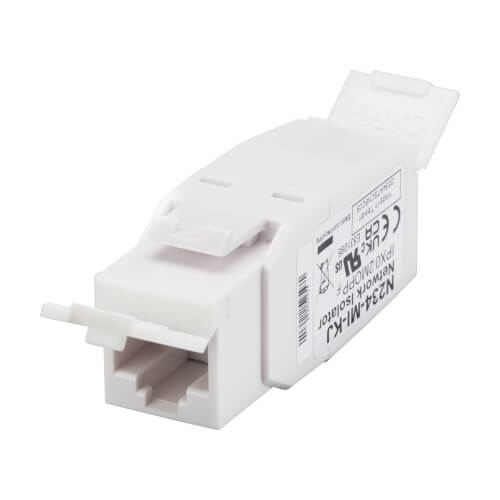 This medical-grade keystone isolator is compatible with hospital networks, diagnostic imaging systems, patient monitoring devices and clinical labs where Ethernet isolation ensures patient and equipment safety. It can also be used with network switches, servers and other IT infrastructure in healthcare facilities that require galvanic isolation between medical and non-medical networks. Its RJ45 ports connect to any standard Cat6 Ethernet cable.