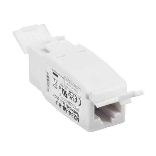 This Ethernet network isolator has two RJ45 ports and acts as a coupler, joining two tested and approved Cat6 cables to complete the connection between compatible medical equipment and a computer or data network in a patient care vicinity. Completely plug and play, this RJ45 isolator does not require any software or an external power supply.