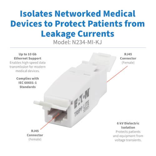 - Isolates harmful leakage currents on a data network to protect patients and equipment