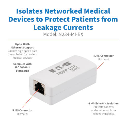 - Isolates harmful leakage currents on a data network to protect patients and equipment