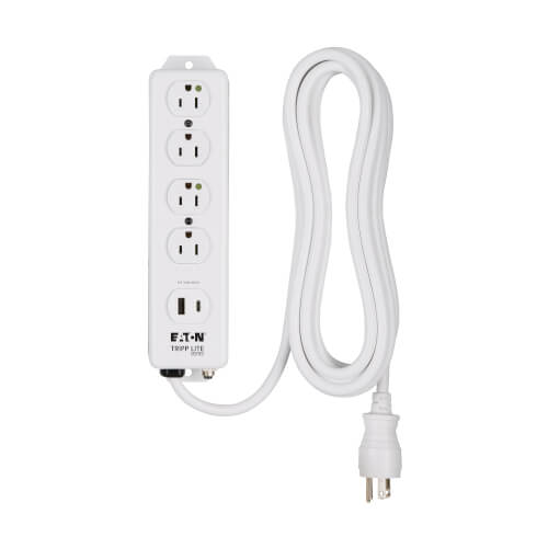 The PS-415-HGUSB features four NEMA 5-15R-HG hospital-grade outlets that supply power to equipment used in areas outside patient care vicinities, including nursing stations, pharmacies, office and administration areas, and labs. This power strip has a NEMA 5-15P-HG “green dot” plug and meets UL 1363 standards.