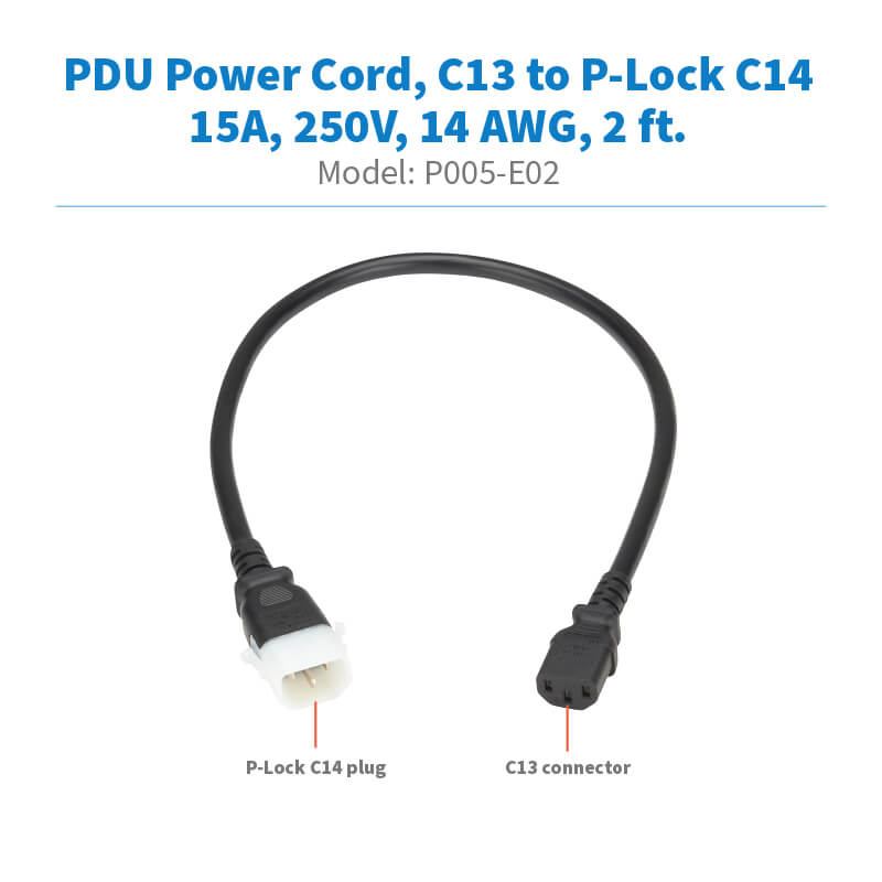 P005-E02 PDU Power Cord, C13 to P-Lock C14, 2 ft. (0.6 m), Black