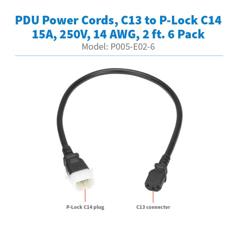 (6) PDU Power Cords, C13 to P-Lock C14, 2 ft. (0.6 m), Black