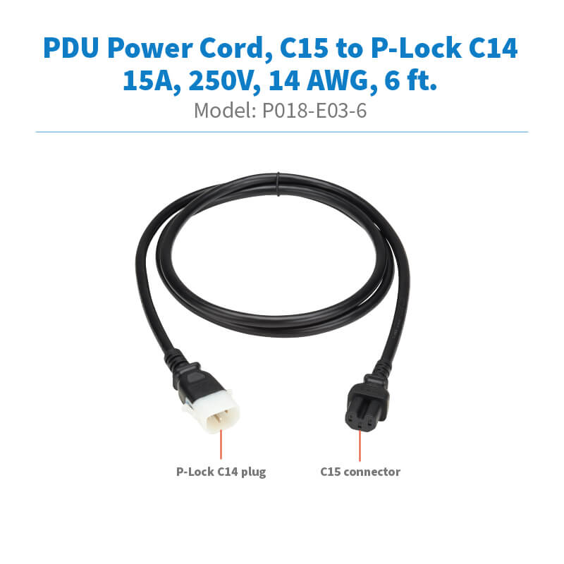 P018-E06 PDU Power Cord, C15 to P-Lock C14, 6 ft. (1.8 m), Black