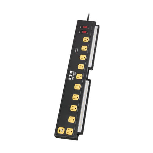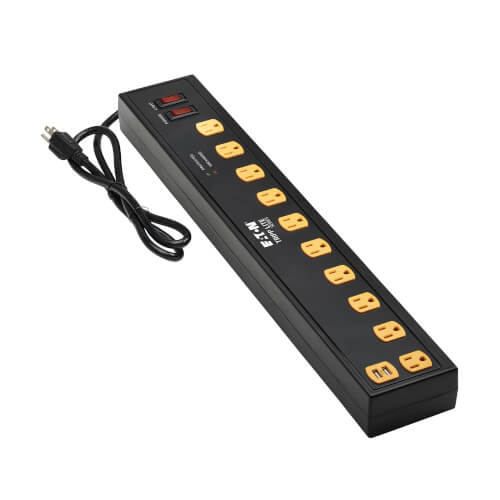 Plug your computer, wireless router, power tools, laboratory equipment and other home/office/industrial electronics into 10 NEMA 5-15R outlets to protect them against dangerous surges, spikes and line noise. The outlets are adequately spaced apart to accommodate bulky transformers without blocking adjacent receptacles.