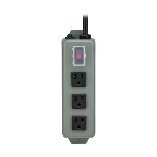 The 3SP9 3-Outlet Industrial Power Strip is the perfect power distribution solution for appliances, power tools, lighting and other electrical equipment in both industrial and commercial settings. Its rugged all-metal housing is designed for demanding environments, making it ideal for a factory floor, warehouse, server room or commercial space. Keyhole mounting tabs let you install the 3SP9 wherever convenient—on a wall, floor, workbench or under a counter.