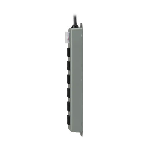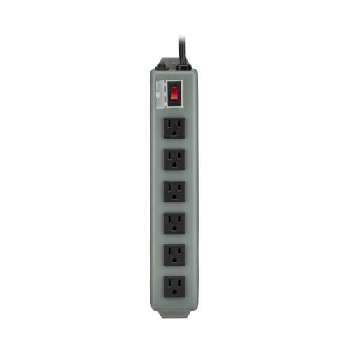 The 6SP Power Strip offers a convenient method of power distribution in workbench, wall-mount or floor-mount applications. Includes six NEMA 5-15R output receptacles with 1.625-inch center-to-center spacing, six-foot (1.8 meters) AC line cord and keyhole mounting tabs for installation in a wide variety of applications. Corded, multi-outlet strip reduces cable clutter and enables the connection of multiple electrical devices to a single AC wall socket. Unfiltered electrical pass-through makes 6SP ideal for distributing alternate waveform UPS or generator power. Features rugged all-metal housing, lighted power switch, 15A resettable circuit breaker and attractive blue/gray color scheme.