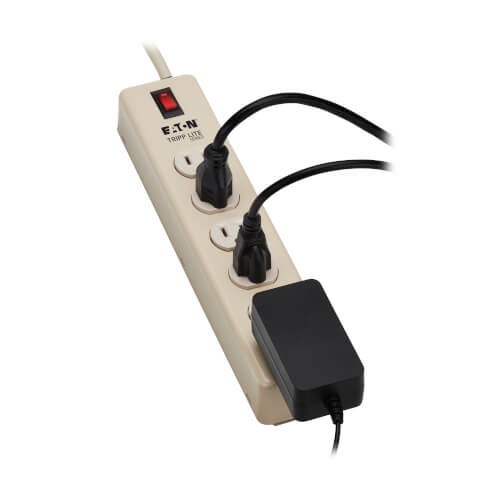 The 6SPDX-15 Power Strip offers a convenient method of power distribution in workbench, wall-mount or floor-mount applications. Includes six NEMA 5-15R output receptacles with 1.5-inch center-to-center spacing, 15-foot (4.6-meter) AC line cord and keyhole mounting tabs for installation in a wide variety of applications. Corded, multi-outlet strip reduces cabling clutter and enables the connection of multiple electrical devices to a single AC wall socket. Unfiltered electrical pass-through makes the 6SPDX-15 ideal for distributing alternate waveform UPS or generator power. Features rugged metal housing, lighted power switch with integrated 15A resettable circuit breaker and attractive beige color scheme.